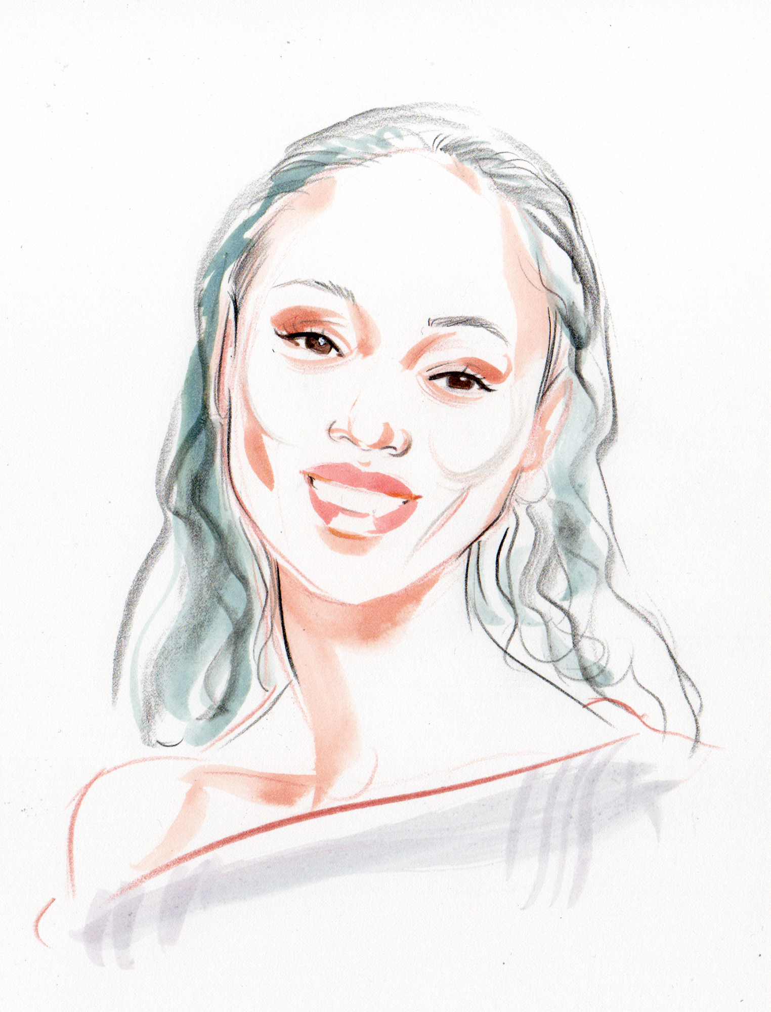 Portraits couleur – encre aquarelle et crayon de couleur, format A5.