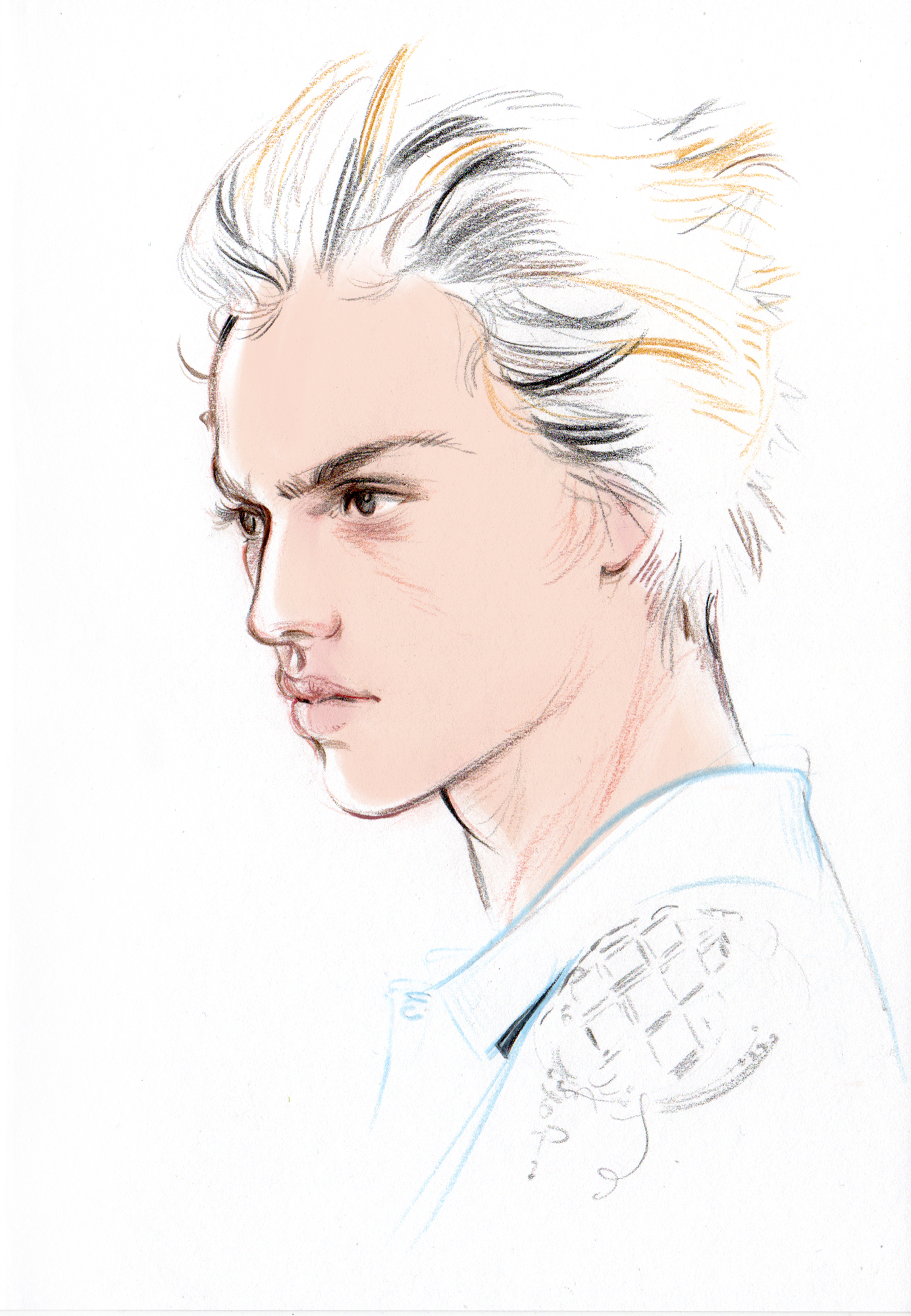Quick colour portraits – watercolour and coloured pencil, A5 format.