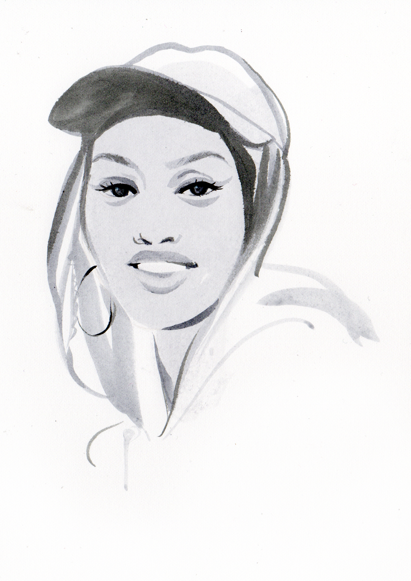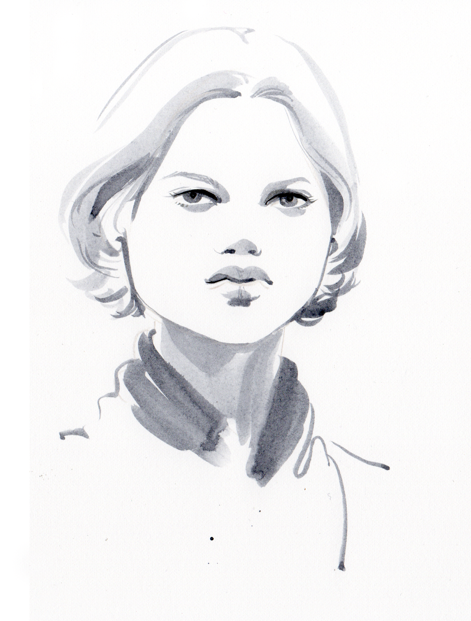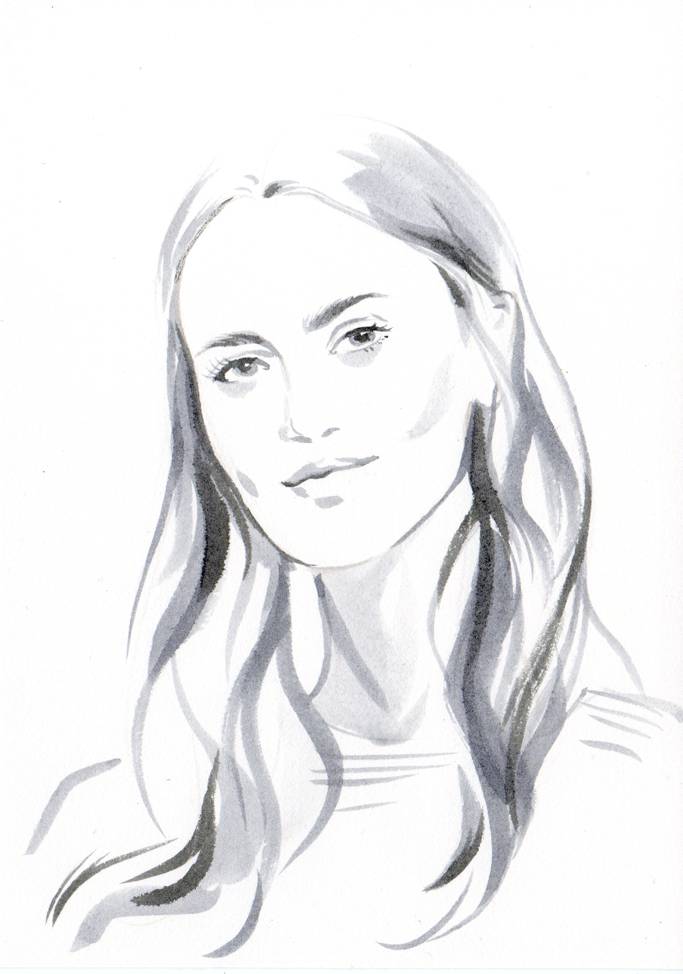 Quick black & white portraits in watercolour or ink, on 300gsm Arches paper, A5 format.